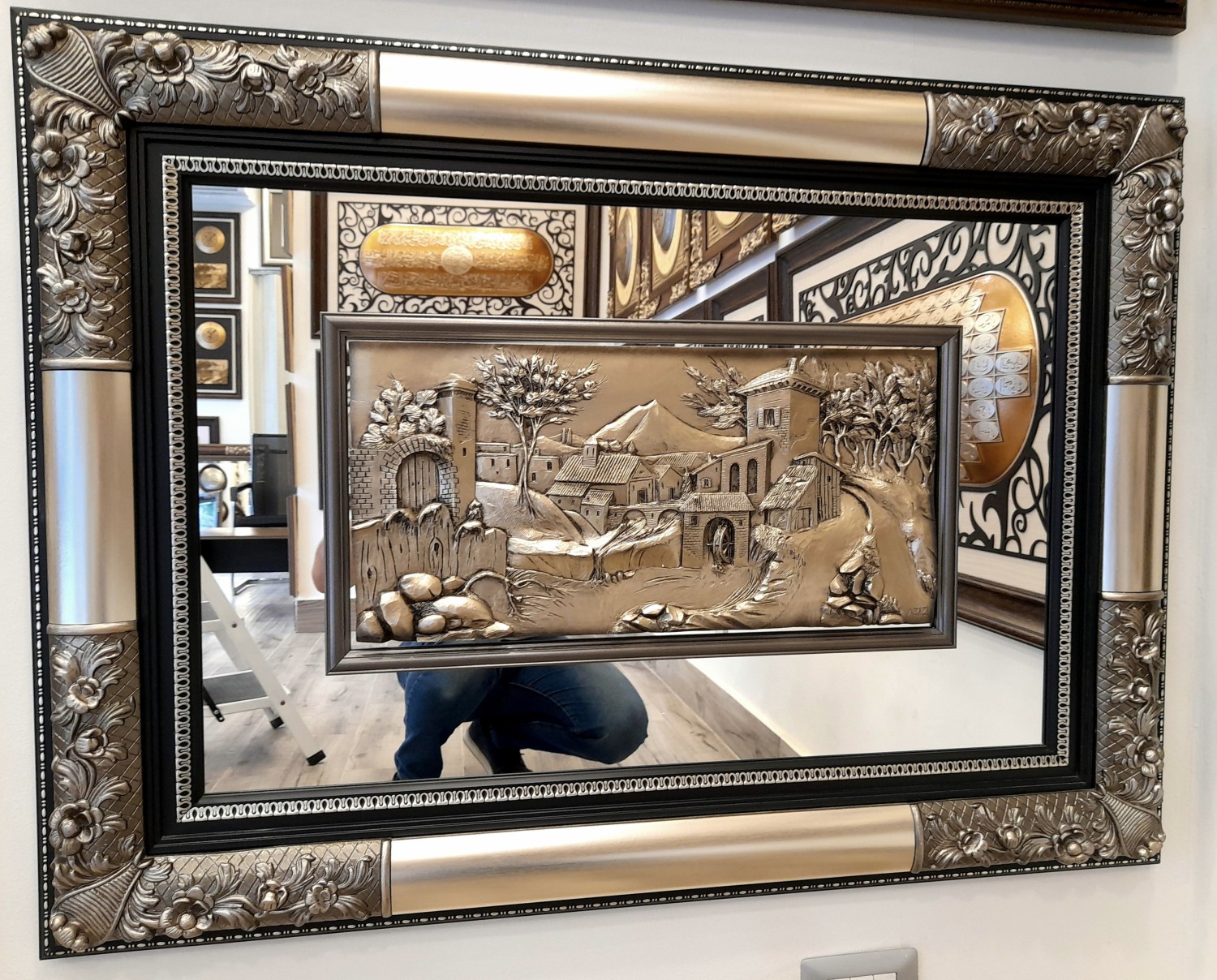 3D Sculpture Tableaux is made of polyresin coated with metallic colours mirror background The frame is natural wood reinforced with PS letters treated to obtain the highest level of finishing and protection from weather factors