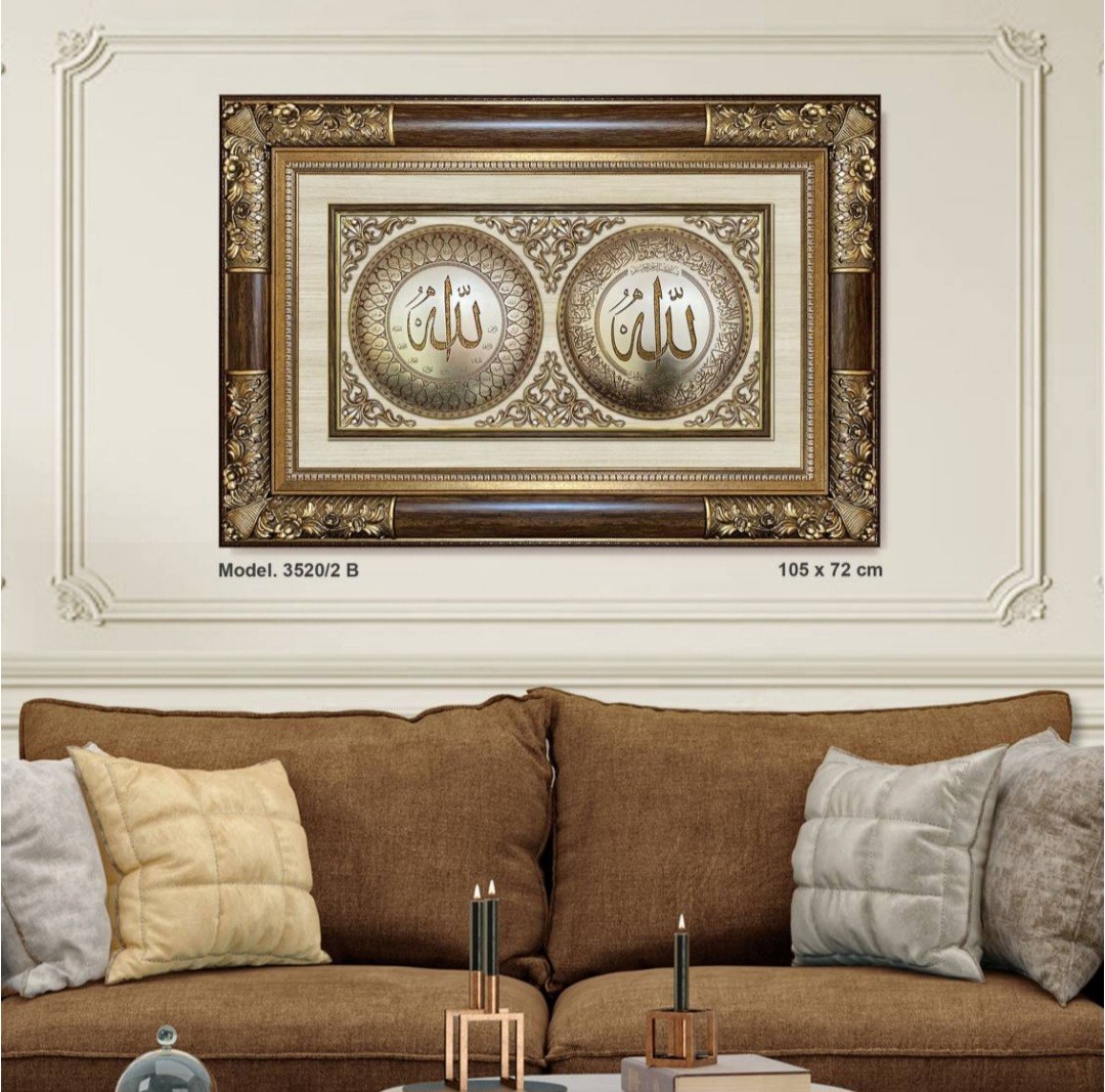 Classic 3D Sculpture Islamic Art Tableau - luxury frame - dual plate ( Ayat al-Kursi - God Names ) - medium - Brown