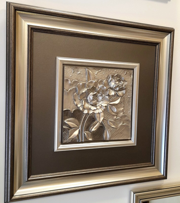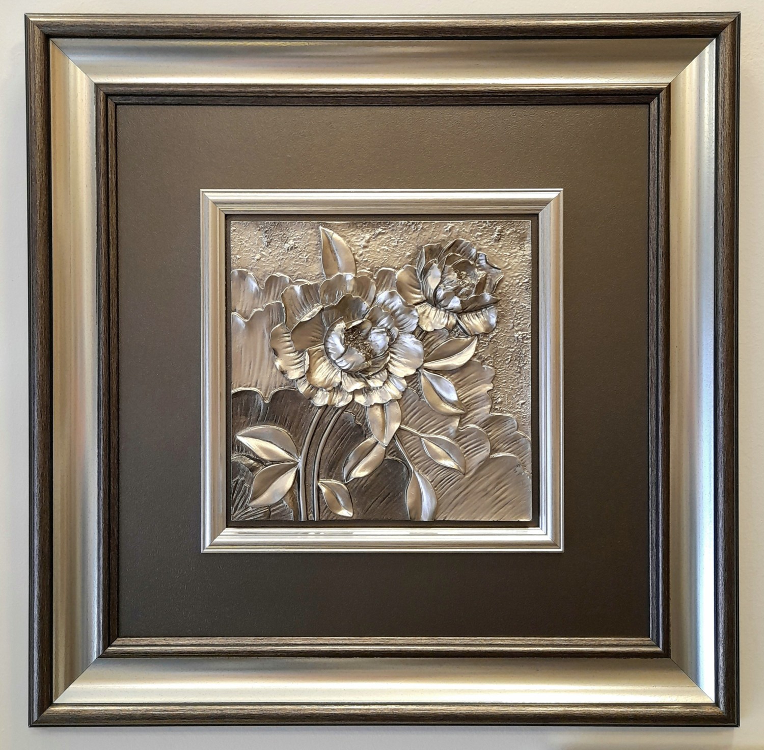Modern 3D Sculpture Tableau - medium - roses - Silver