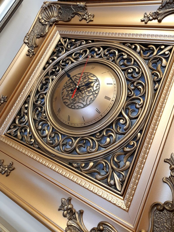 3D Sculpture Wall clock is made of polyresin coated with metallic colours, hand coated The frame is natural wood reinforced with PS letters treated to obtain the highest level of finishing and protection from weather factors