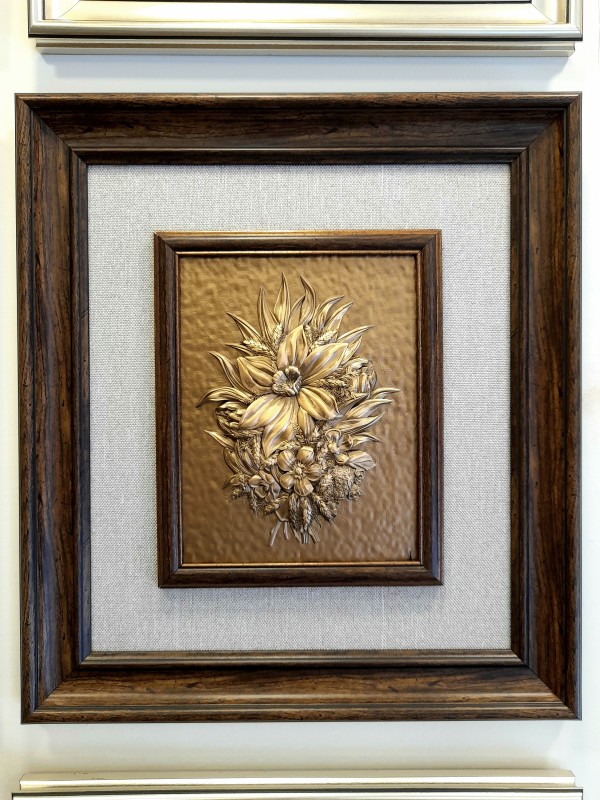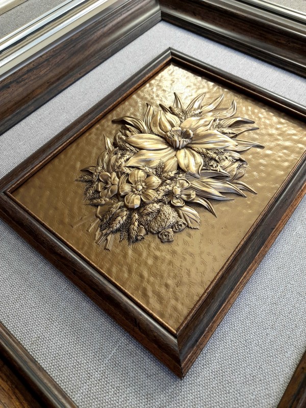 Modern 3D Sculpture Tableau - small - roses - Brown