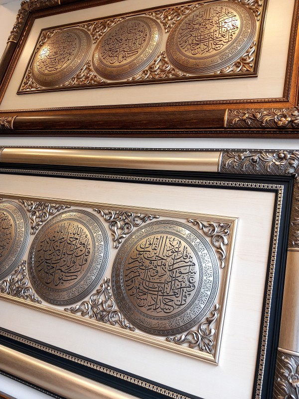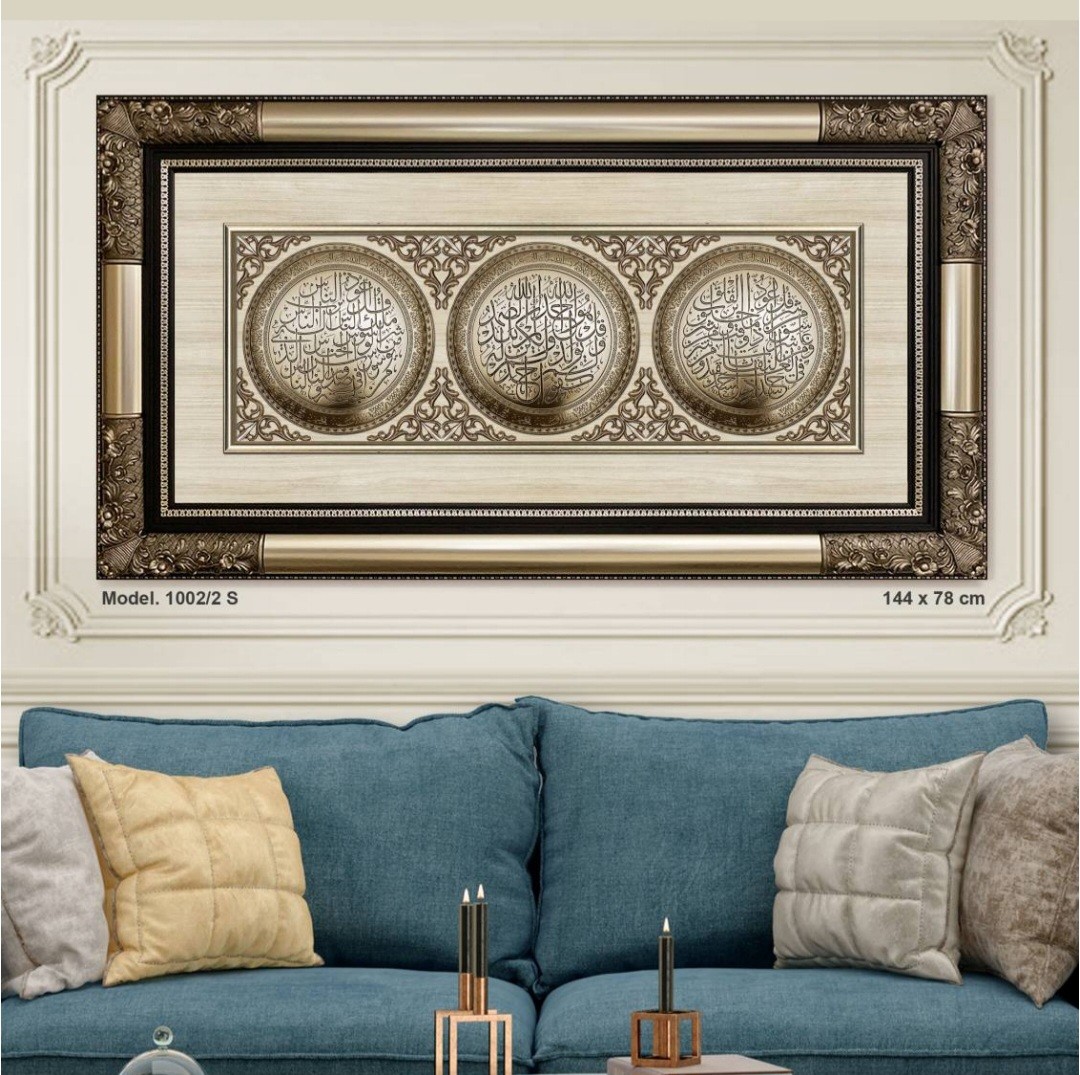 Classic 3D Sculpture Islamic Art Tableau - luxury frame - tripartite plate ( Surah Al-Falaq - Surah Al-Ikhlas -Surah Al-Nas ) - Larg - Silver