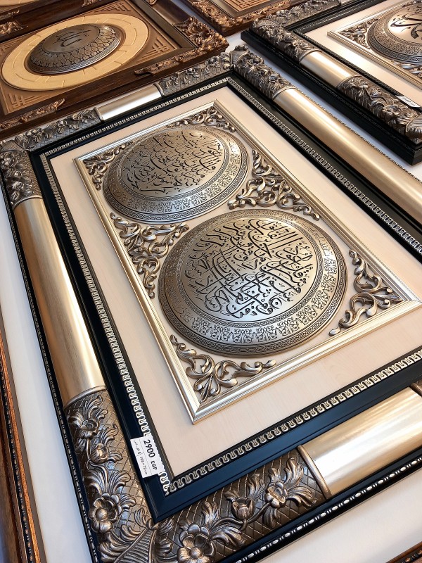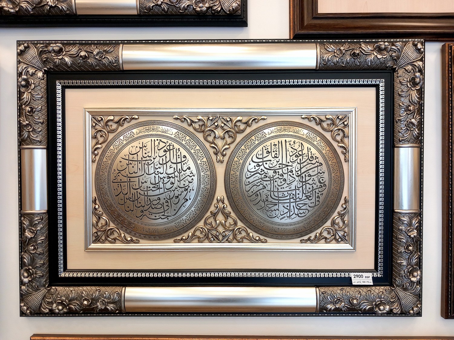 Classic 3D Sculpture Islamic Art Tableau - luxury frame - dual plate ( Surah Al-Falaq - Surah Al-Nas ) - medium - Silver
