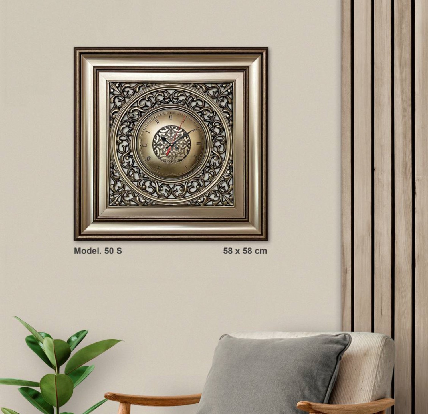 3D Sculpture Wall clock is made of polyresin coated with metallic colours, hand coated The frame is made of PS coated with hot stamping foil, resistant to different weather factors