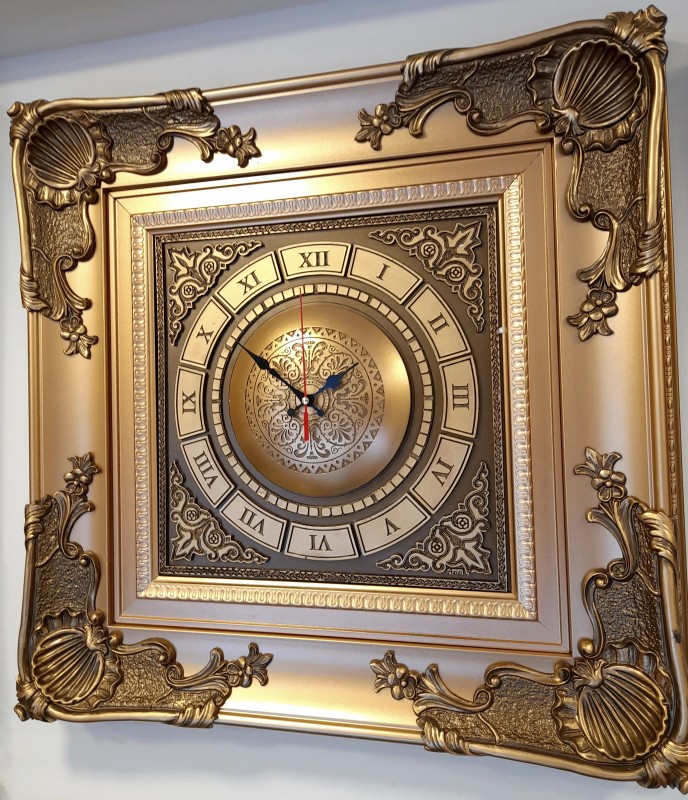 3D Sculpture Wall clock is made of polyresin coated with metallic colours, hand coated The frame is natural wood reinforced with PS letters treated to obtain the highest level of finishing and protection from weather factors