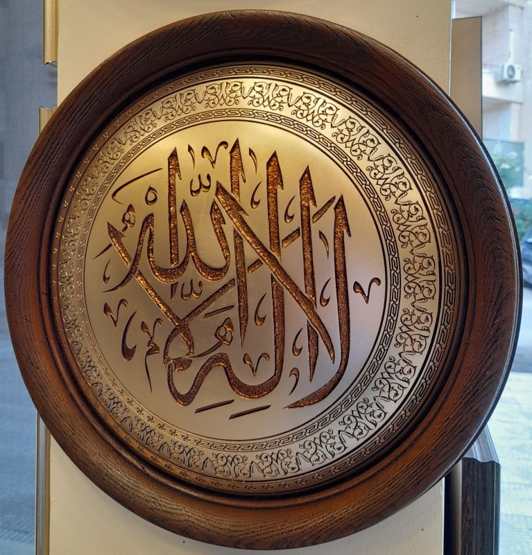 3D Sculpture Islamic Art Tableau - No God except Allah - Circular - small - Brown