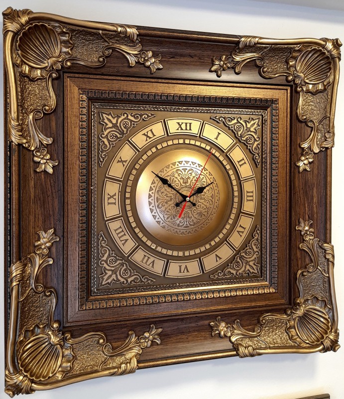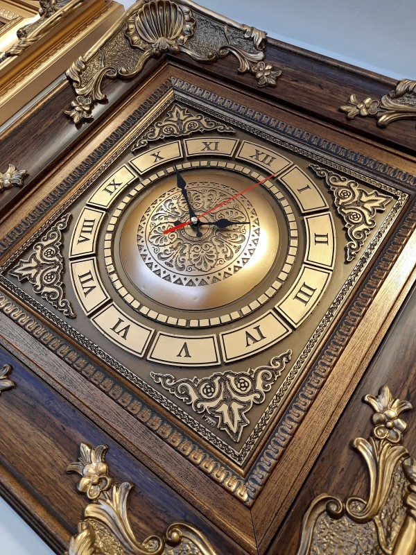 3D Sculpture Wall clock is made of polyresin coated with metallic colours, hand coated The frame is natural wood reinforced with PS letters treated to obtain the highest level of finishing and protection from weather factors
