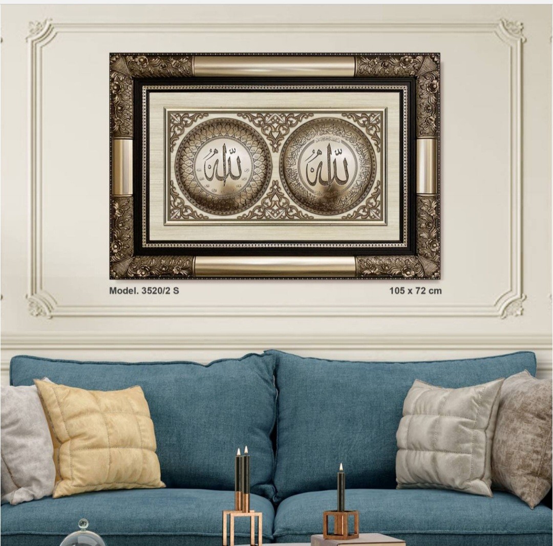 Classic 3D Sculpture Islamic Art Tableau - luxury frame - dual plate ( Ayat al-Kursi - God Names ) - medium - Silver