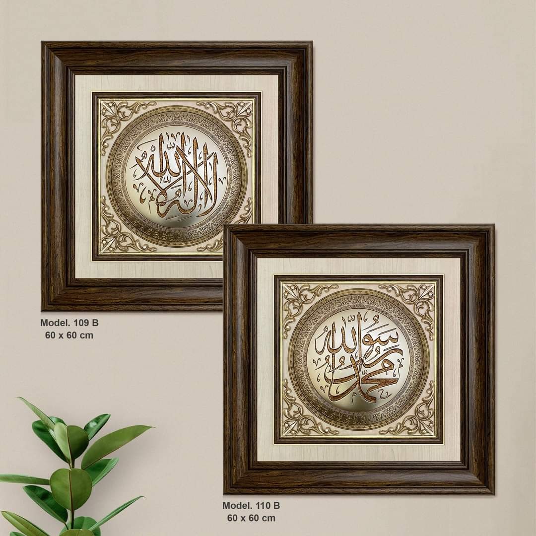 Modern 3D Sculpture Islamic Art Tableau - No God except Allah - Brown