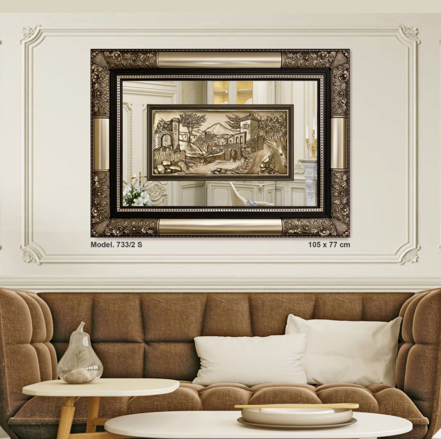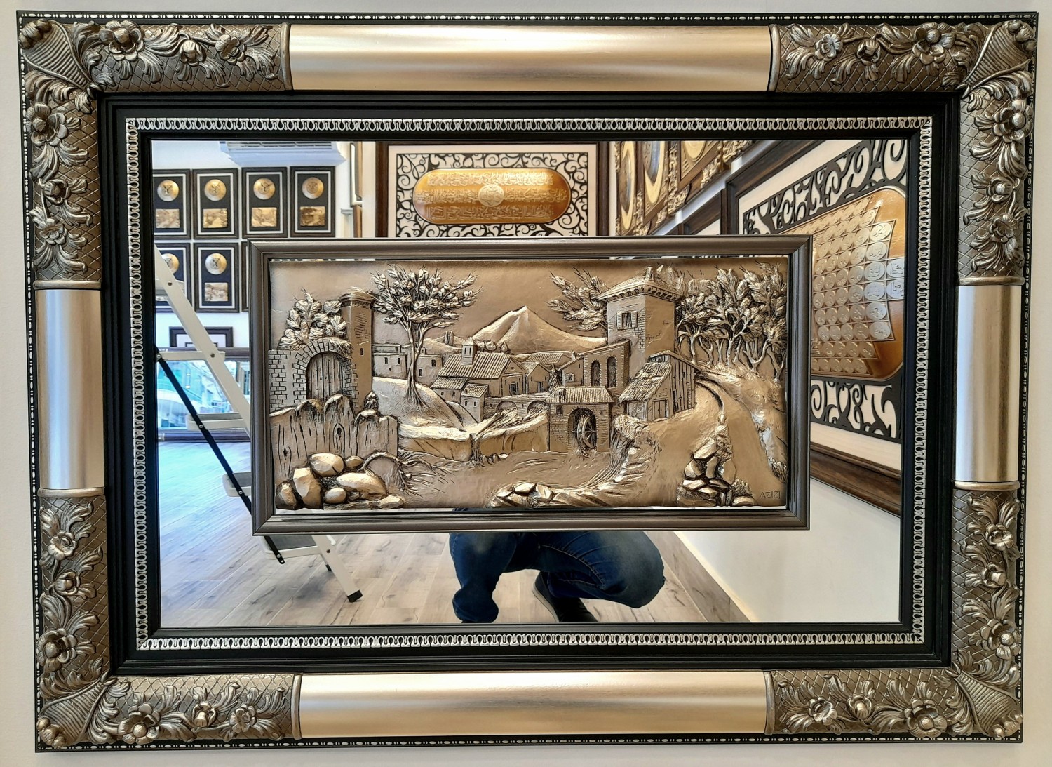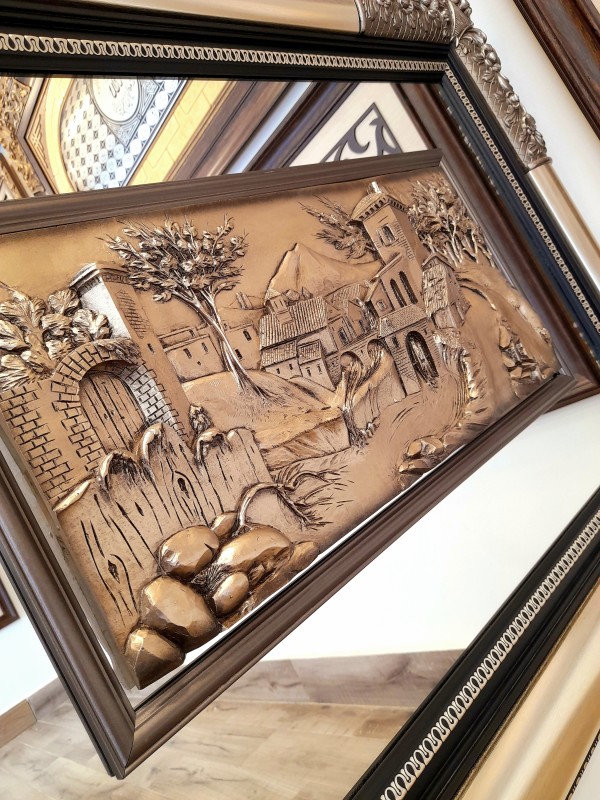 3D Sculpture Tableaux is made of polyresin coated with metallic colours mirror background The frame is natural wood reinforced with PS letters treated to obtain the highest level of finishing and protection from weather factors
