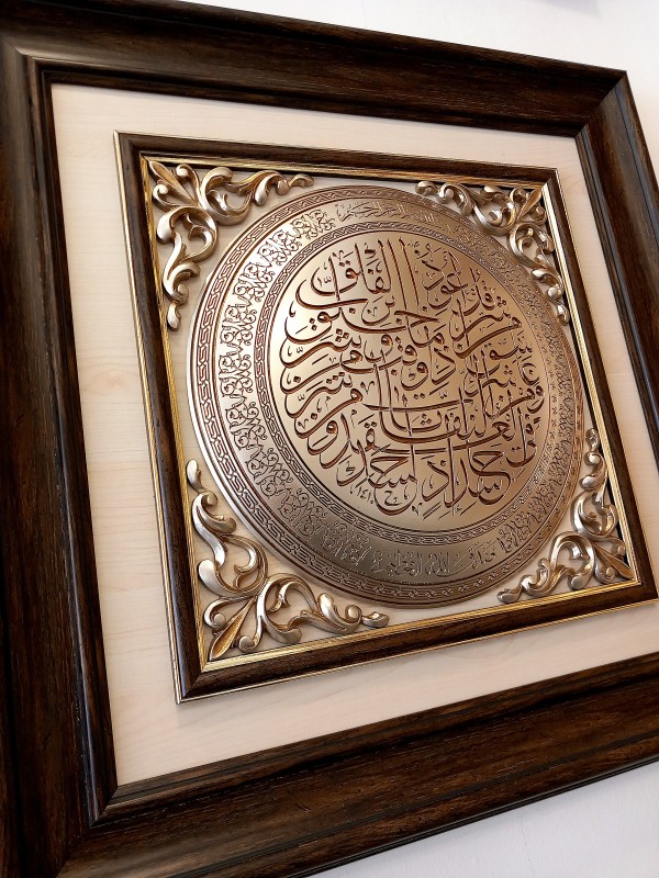 Modern 3D Sculpture Islamic Art Tableau - Surah Al-Falaq - Brown