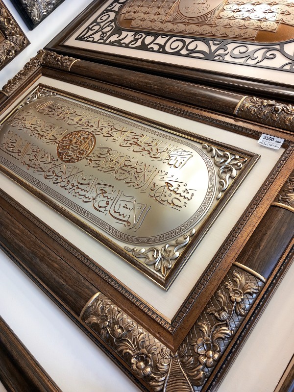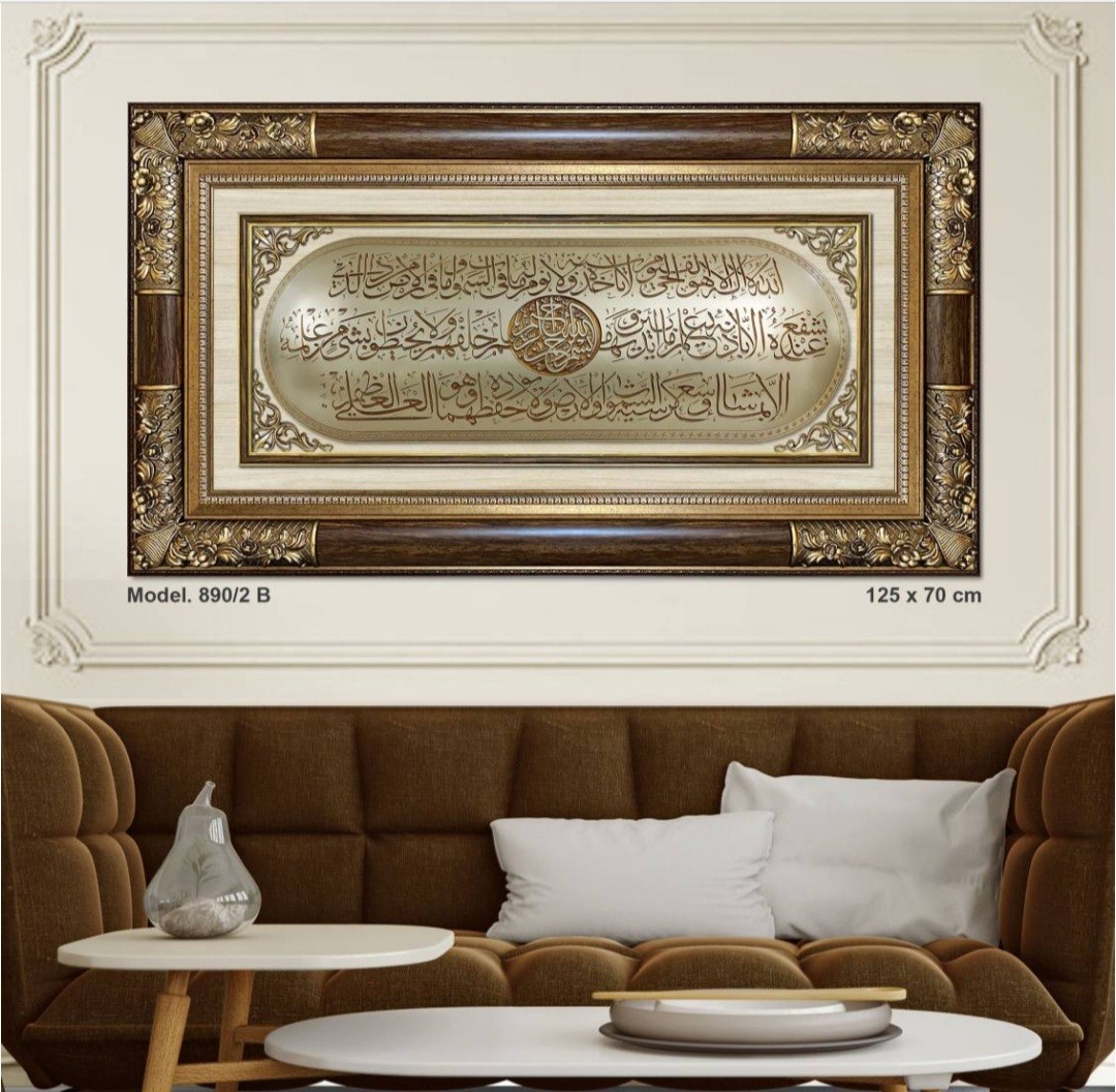 Classic 3D Sculpture Islamic Art Tableau - luxury frame - al-Kursi vrse - Big - Brown