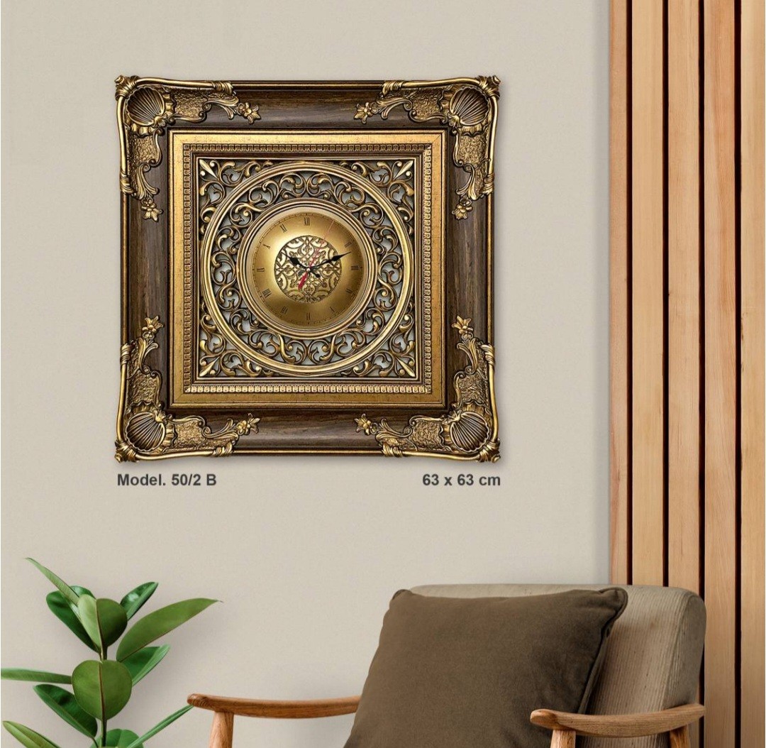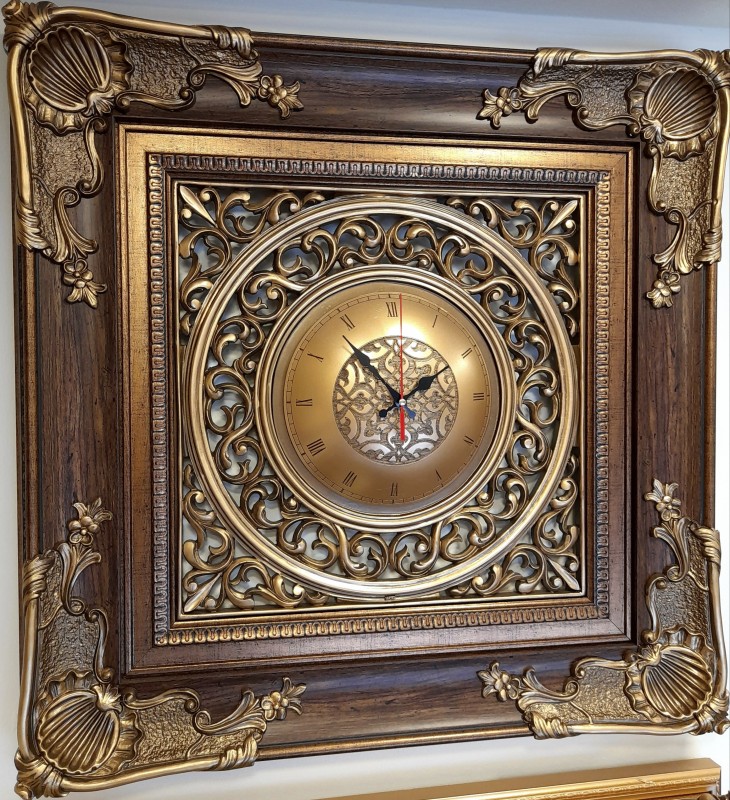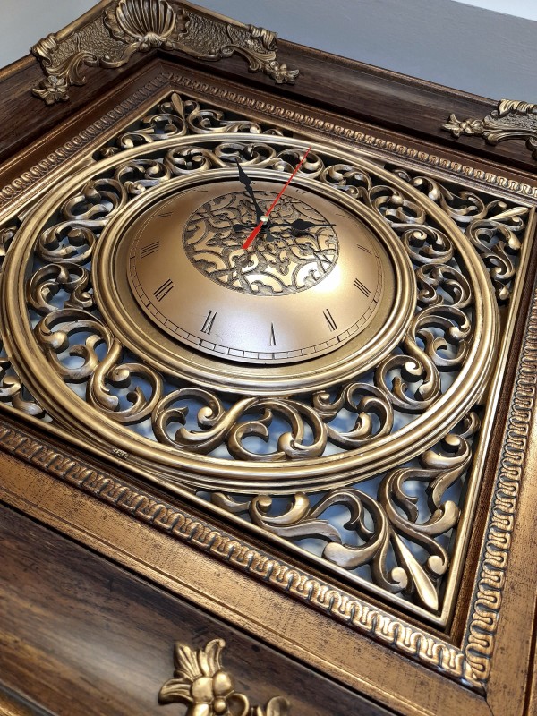 3D Sculpture Wall clock is made of polyresin coated with metallic colours, hand coated The frame is natural wood reinforced with PS letters treated to obtain the highest level of finishing and protection from weather factors