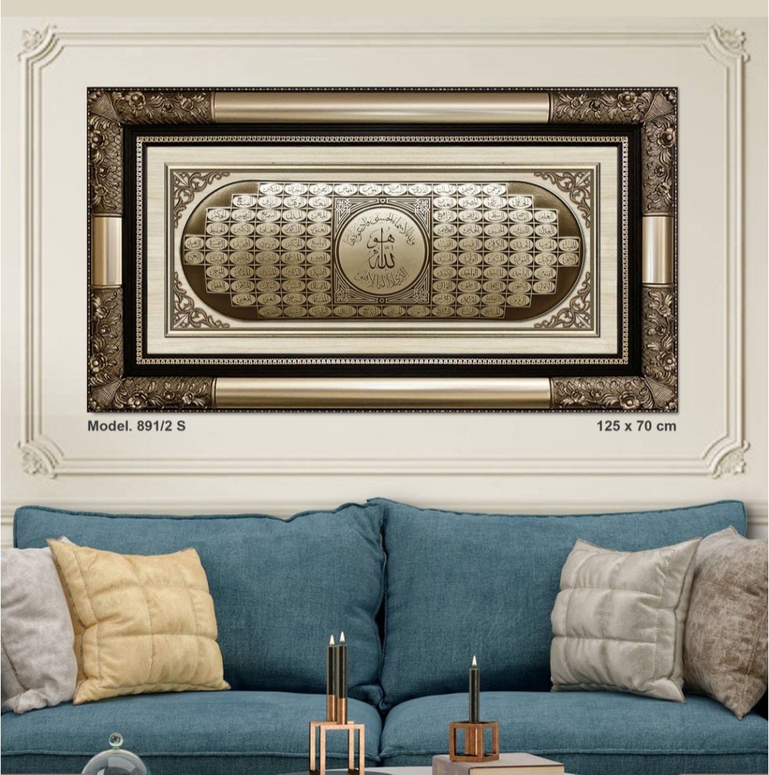 Classic 3D Sculpture Islamic Art Tableau - luxury frame - God Names - Big - Silver